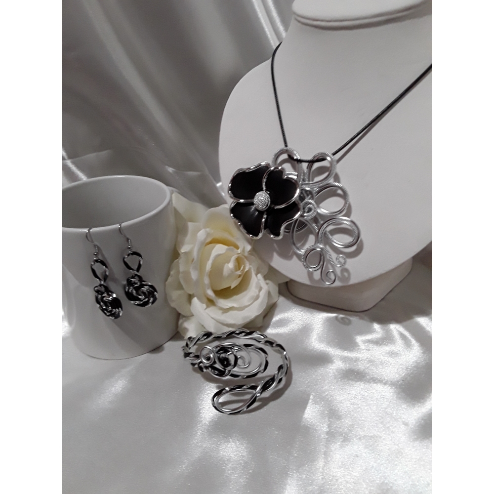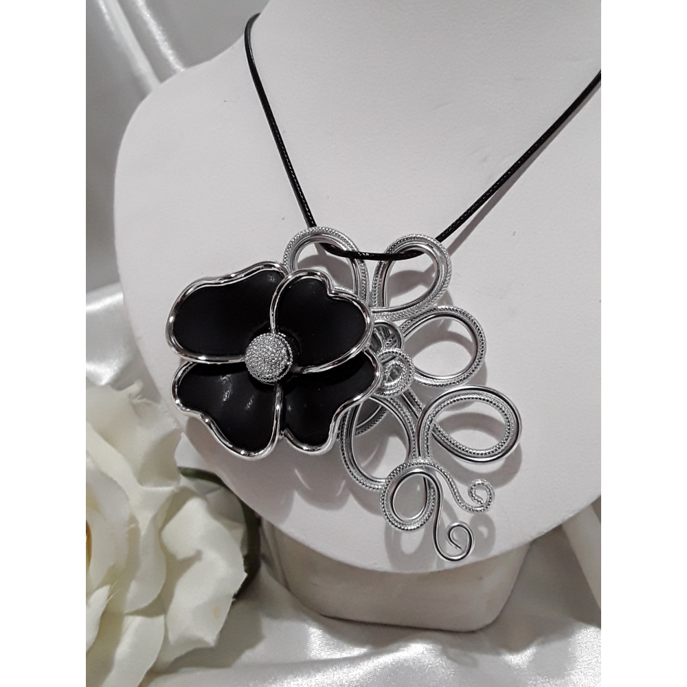 Collier avec pendentif en fil d'aluminium argenté et perle acrylique en forme de fleur
