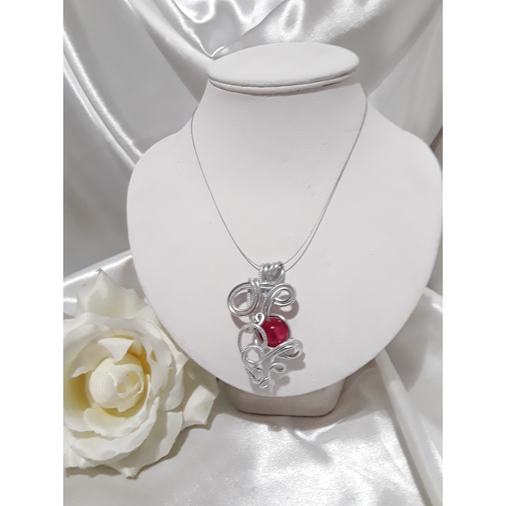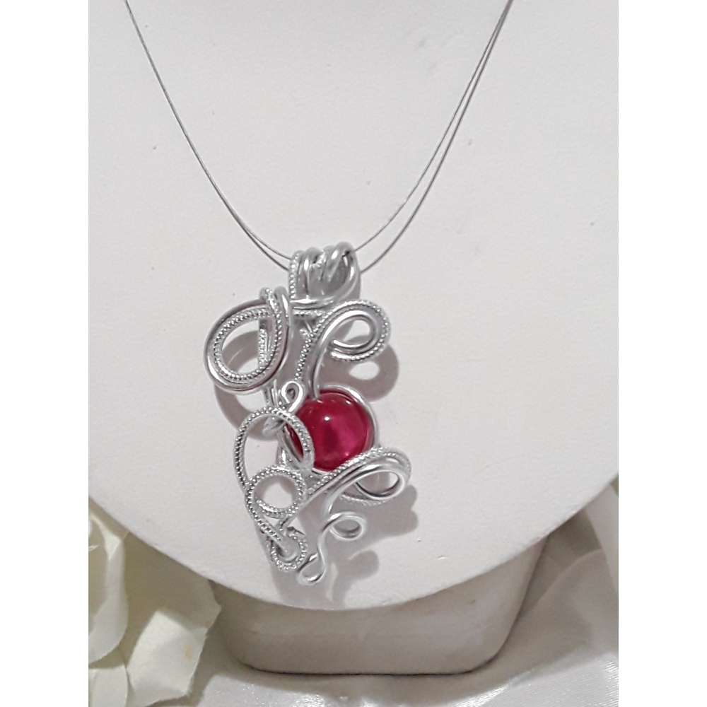 Collier avec pendentif en fil d'aluminium avec sa perle rose fushia